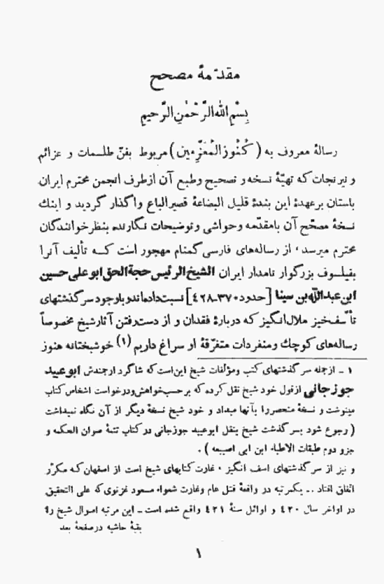 66 مورد از نمونه مطالب کتاب یا رساله کنوزالمعزمین – اثری از ابن سینا