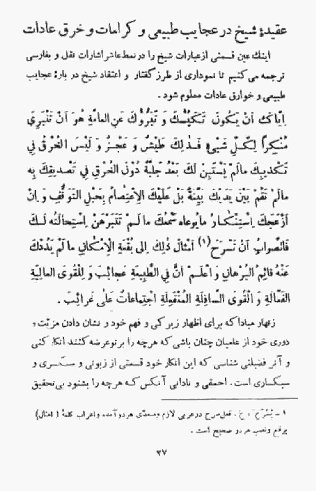 عقیده شیخ ابو علی سینا در عجایب طبیعی و کرامات و خرق عادات