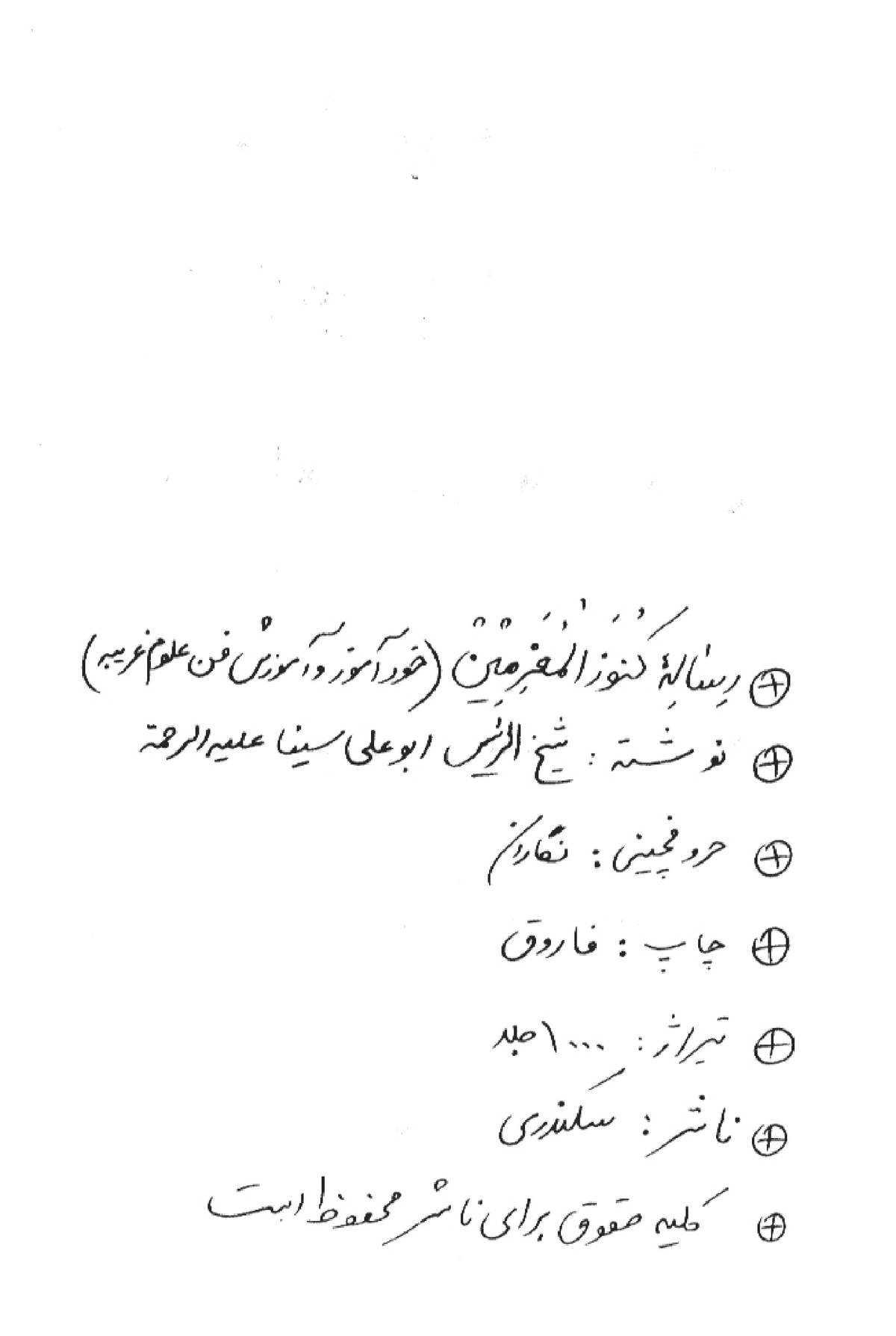 نویسنده: منسوب به حکیم فیلسوف دانشمند نامدار بزرگ ایرانی ابو علی سینا - متوفی 428