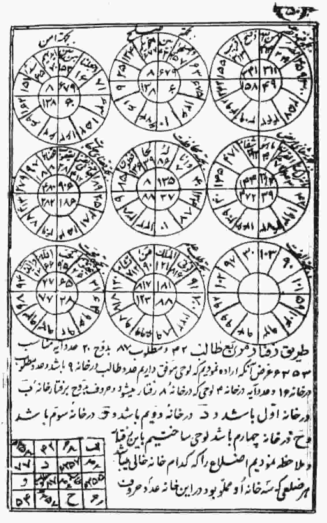- دوایر حروف جهت عزت و دولت و مقبول ماندن و فاتح شدن و صلح و آشتی و امن بودن و شفای مریض و محافظت و قضای حاجات و طلب علم و دانش و مهر و محبت و…