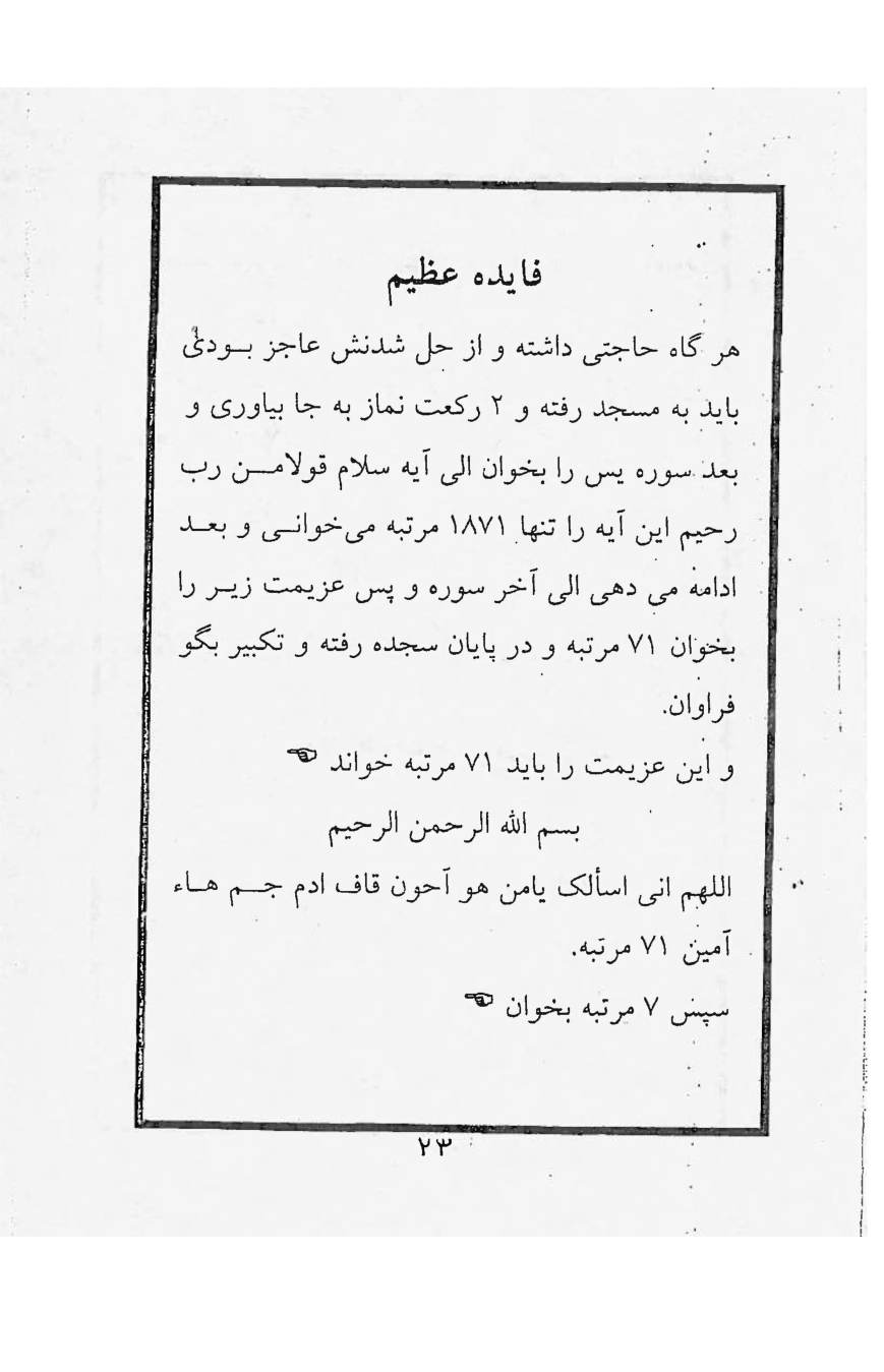 کتاب حاضر میتواند برای علاقهمندان به یادگیری علوم غریبه، پژوهشگران تاریخ علم، و افرادی که با مشکلات مختلف دست و پنجه نرم میکنند، مفید باشد. البته باید توجه داشت که استفاده از مطالب این کتاب نیاز به دانش، تجربه و رعایت دقیق دستورات دارد.