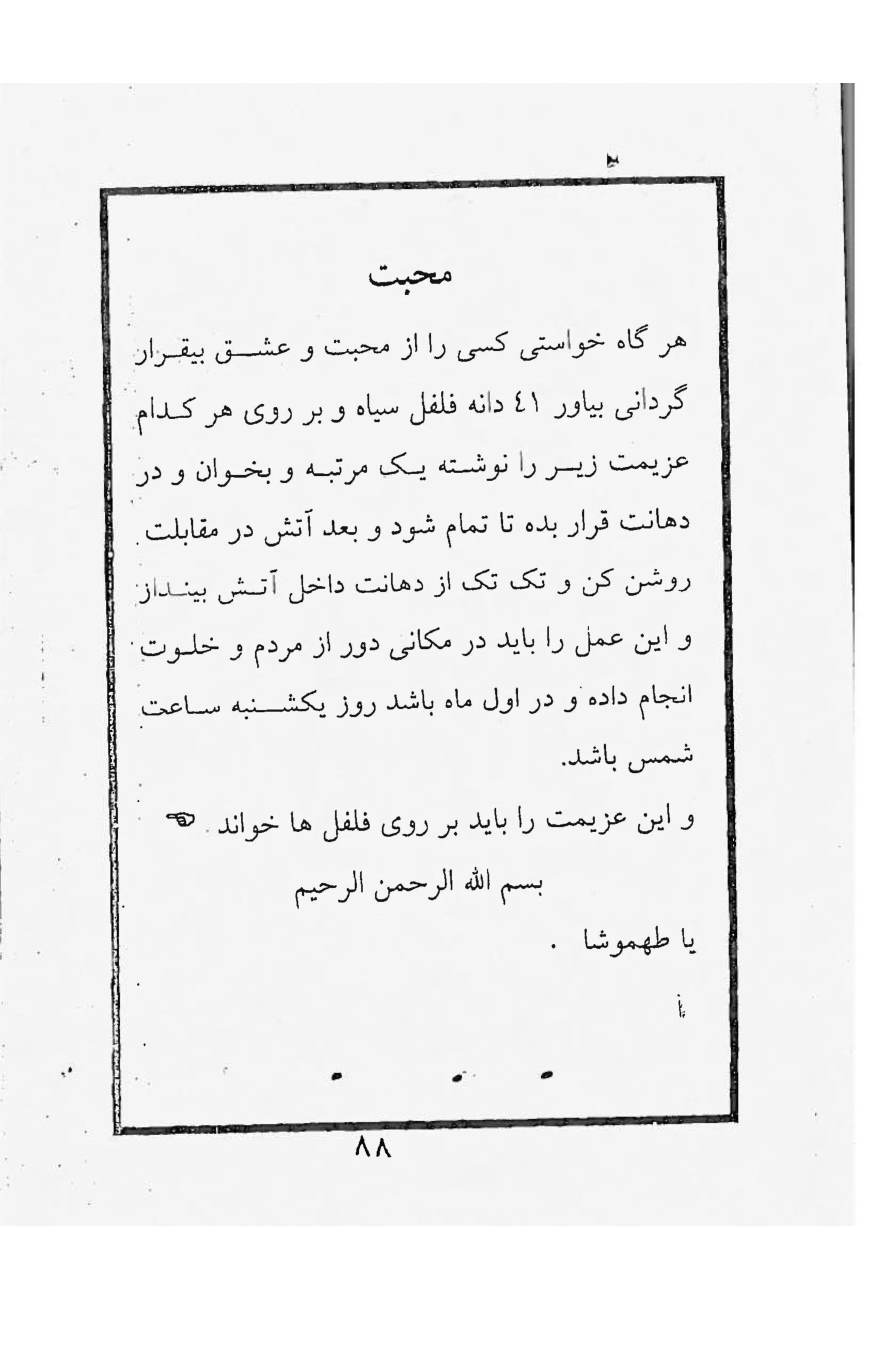 فصل پنجم کتاب به بیان روشهای ایجاد محبت و جذب القلوب اختصاص یافته است. در این فصل، طلسمات قوی محبت، ادعیههای جلب مهر و محبت، و همچنین روشهای جذب قلب افراد بیان شده است. میرداماد در این بخش توضیح میدهد که چگونه میتوان با استفاده از ادعیه و طلسمات، بر روابط بین افراد تأثیر مثبت گذاشت.