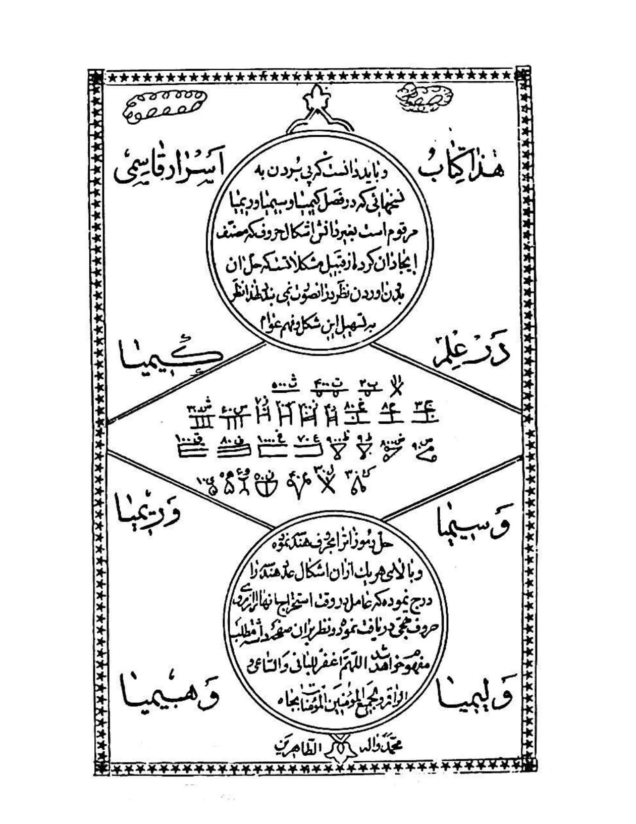- این کتاب در علم کیمیا و سیمیا و ریمیا و لیمیا و هیمیا