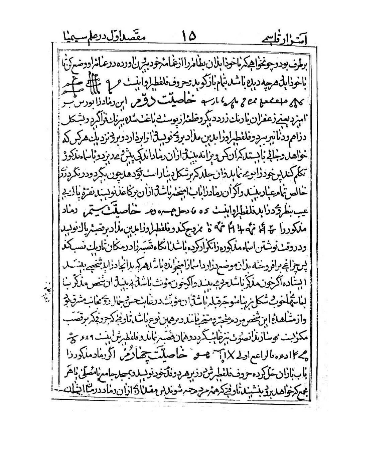 - موضوع: علوم غریبه، طلسمات، کیمیا، سیمیا، لیمیا، ریمیا، هیمیا، دعا، جفر، اوفاق