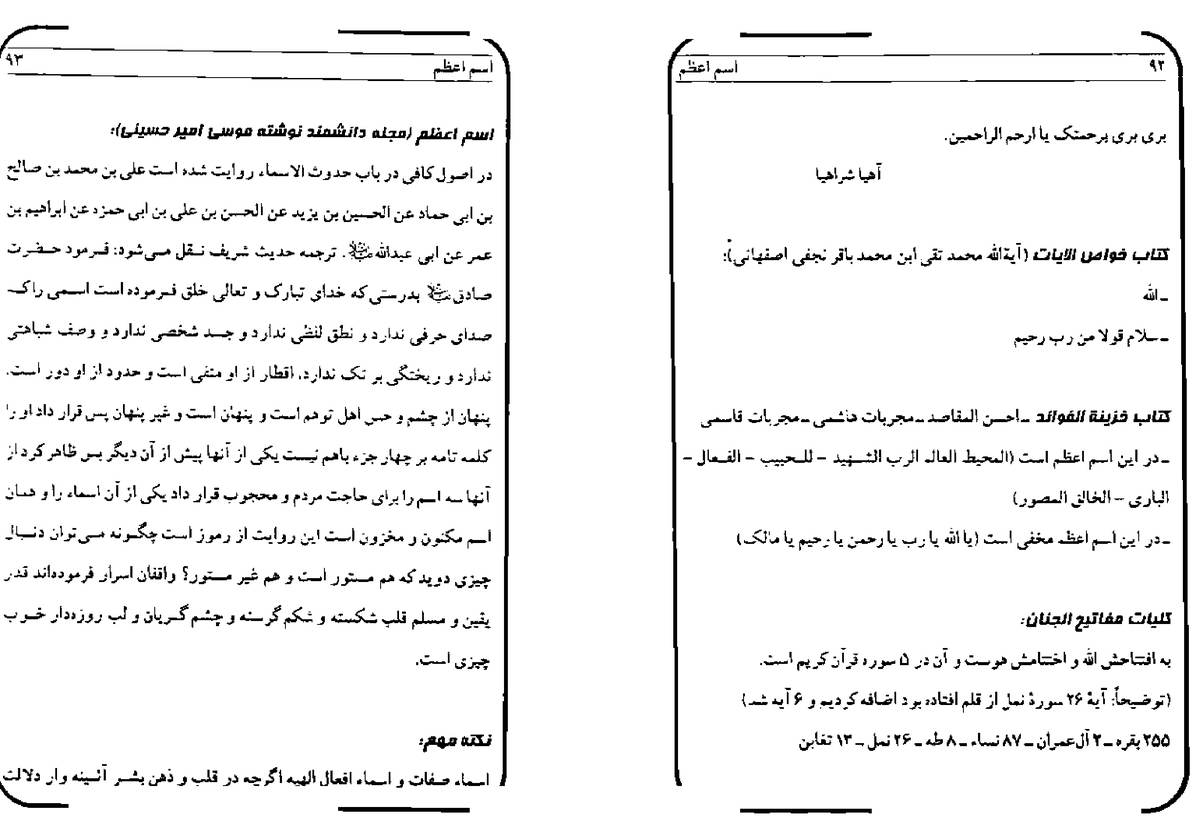 ۳.۲ ذکر اسم اعظم و تأثیرات روحی